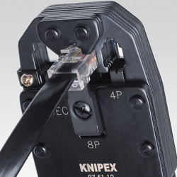- 4-, 6- ja 8-napaisten Western-pistokkeiden, tyyppi RJ 10 (7,65 mm leveä), tyyppi RJ 11/12 (9,65 mm leveä) ja tyyppi RJ 45 (11,68 mm leveä) puristamiseen